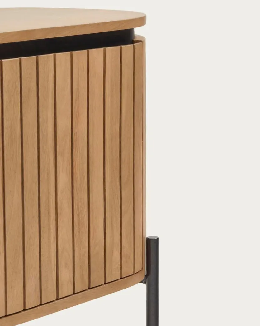 Softe Konturen und sanfte Linien verbinden sich mit festem Material und machen den Nachttisch Licia von Kave Home zu einem gelungenen Beispiel modernen Möbeldesigns. Viele schmale Elemente dieser hübschen Nachtkonsole sind einzeln angeordnet, sodass die harmonische Rundung des Korpus‘ gelingt. Optisch wertet der aparte Nachttisch Licia auch ein schlichtes Bett umgehend auf und zaubert darüber hinaus mit seinem angesagten Nature-Look eine angenehme Wärme ins Ambiente.