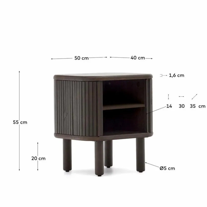 Der Nachttisch Mailen von Kave Home vermittelt Naturverbundenheit, Charme und modernen Chic. Rollladentüren, abgerundete Kanten und viel gemütliches Holz bestimmen bei dieser funktionalen Nachtkonsole die Ästhetik. Eine sehr gute Wahl ist der Nachttisch Mailen zum Beispiel für einen Raum mit einem Bett im puristischen Scandi-Look.