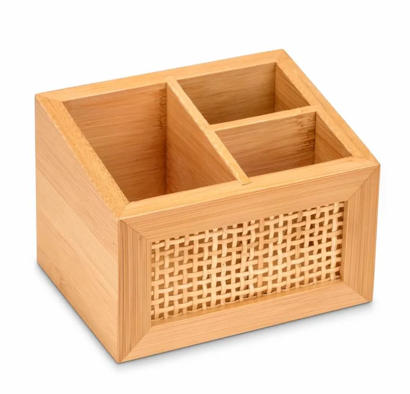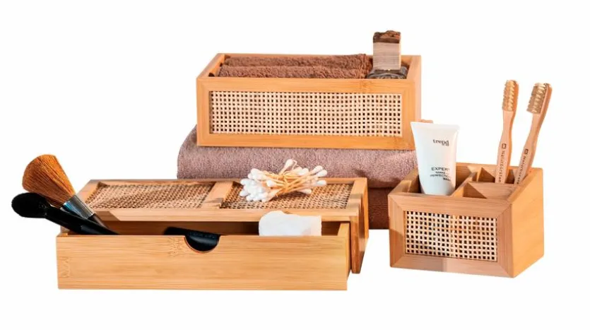 In dem Organizer Allegre der Marke WENKO können Sie allerlei Kleinigkeiten aufbewahren. Dank der drei Fächer lassen sich die Badaccessoires hier mit einem hohen Maß an Ordnung abstellen. Der Organizer Allegre besteht aus Bambus und Rattan. Weil dies nachwachsende Rohstoffe sind, ist er besonders bei Naturliebhabern sehr geschätzt.