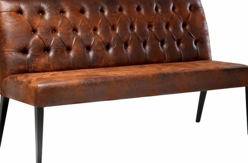 Die trendige Polsterbank Buttons Vintage von Kare im angesagten Used-Look wird Retro-Fans begeistern. Die bequeme Polsterung lädt zum Sitzen und Verweilen ein. Optisches Highlight der stilechten Bank von Kare sind die tollen Knöpfe, die die Rückenlehne zieren – sie runden das harmonische Design perfekt ab.