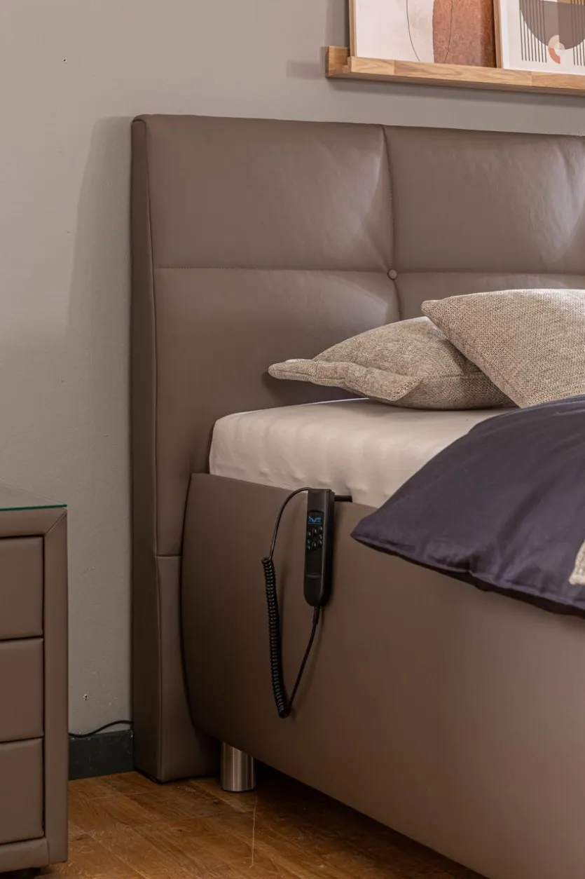 - Mit 2x Lattenroste 90 x 200 cm, stufenlose motorische Kopf- und Fußteilverstellung, mit Bettkastenfunktion