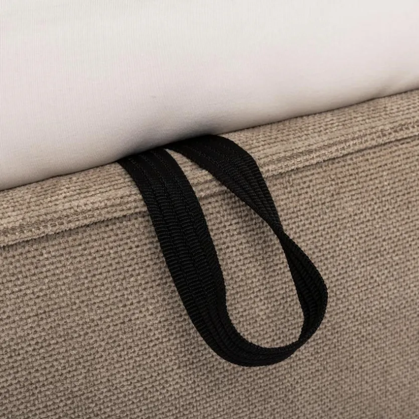 - Aus Holzwerkstoff bezogen mit Stoff in beige