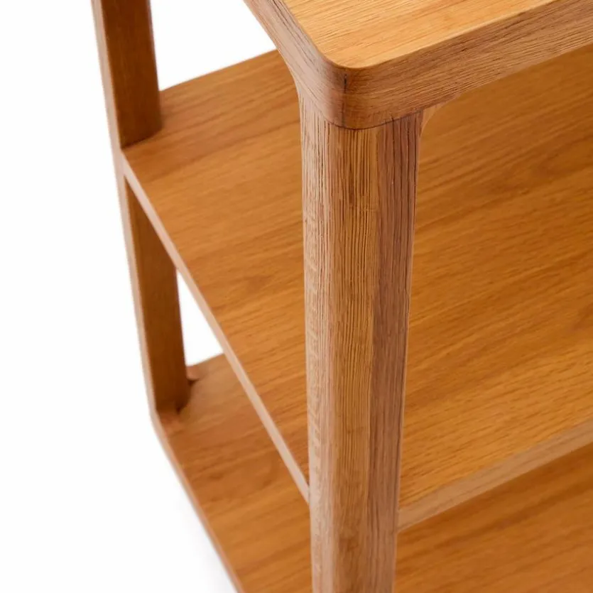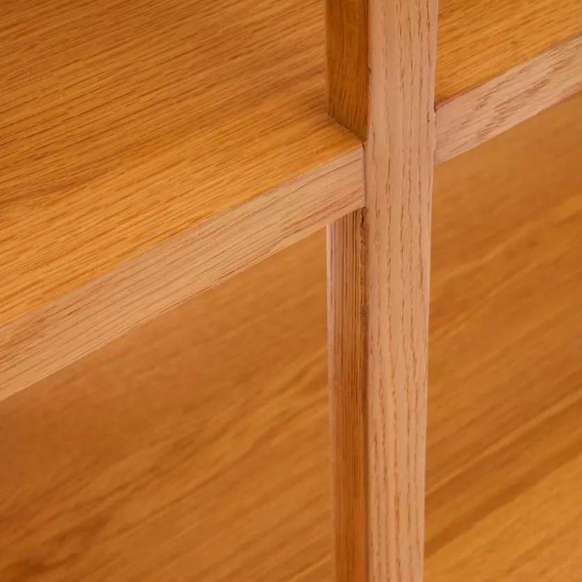 Das Regal Maymai von Kave Home verkörpert die natürliche Schönheit des Eichenholzes in einem puristischen und robusten Design. Genießen Sie die zeitlose Eleganz dieses Wandregals, das jeden Raum mit edlen Materialien und minimalistischem Flair bereichert. Das Regal Maymai mit seinen verstellbaren Beinen bietet Flexibilität und die natürliche Eichenstruktur mit Bürsteneffekt verbreitet einen eleganten Touch.