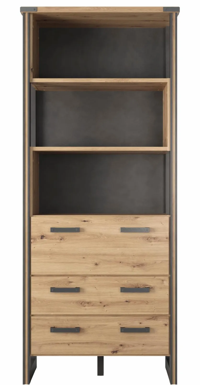 - Mit 3 offenen Fächern, 1 Klappe und 2 Schubkästen