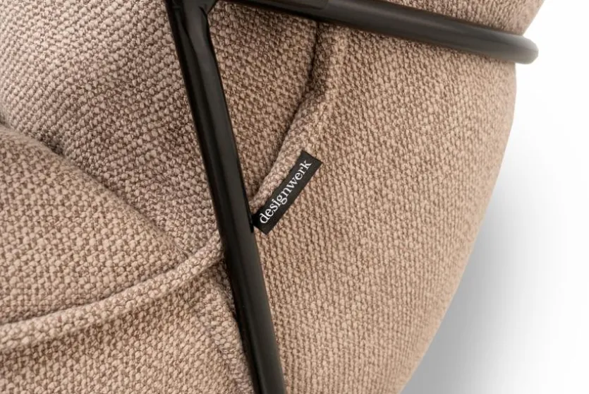 - Bezug aus Stoff (Colonna) in taupe (D004), Armlehnen und Füße aus Eiche in schwarz matt lackiert
