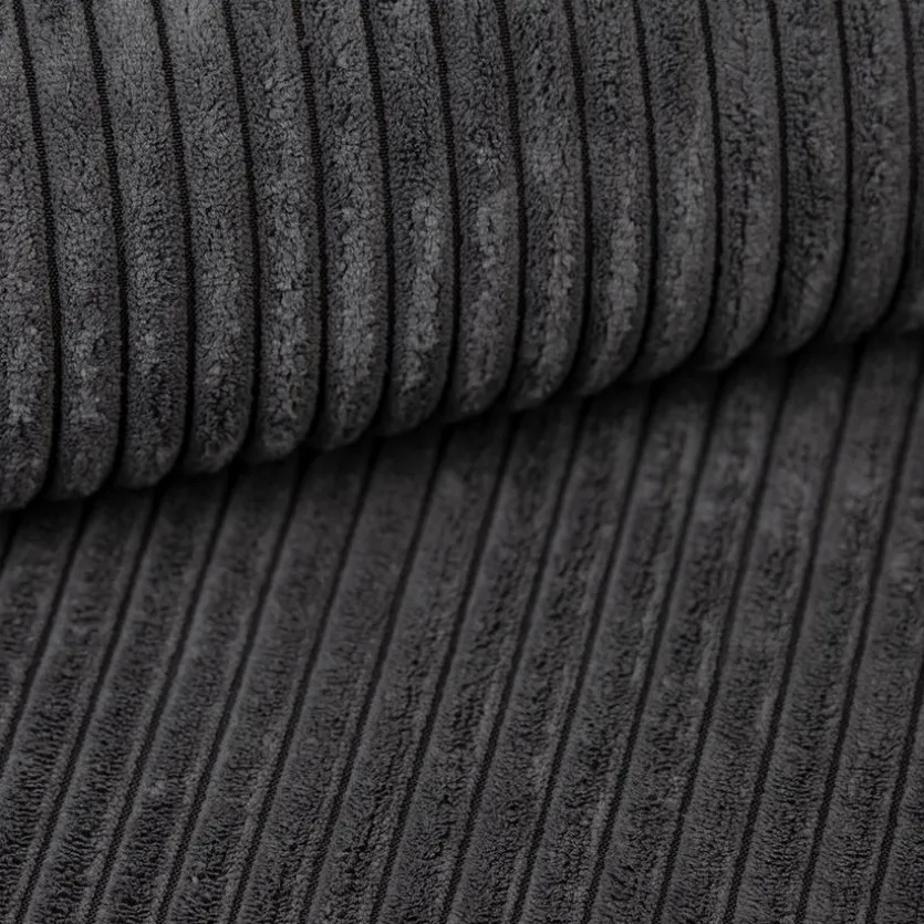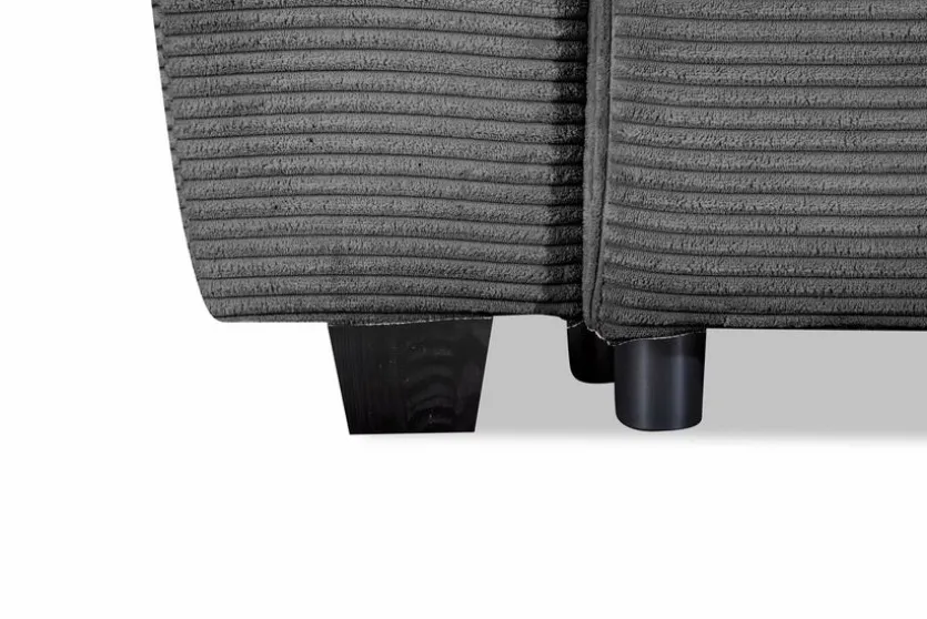 - Inkl. 3 Rückenkissen aus Stoff in Cord Anthrazit und 2 Zierkissen aus Stoff in Grau