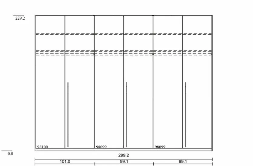 Breite: 189 cmHöhe: 105 cmTiefe: 222 cmSchrank:Breite: 300 cmHöhe: 229 cmTiefe: 60 cmNachttisch:Breite: 60 cmHöhe: 23 cmTiefe: 46 cm