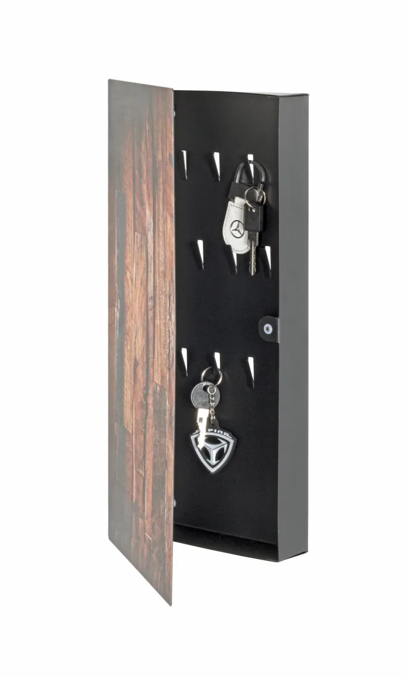 In dem Schlüsselkasten aus dem Sortiment von Haku können Sie Ihre wichtigen Utensilien zu jeder Zeit platzsparend, sicher und übersichtlich verwahren. Optisch überzeugt das Produkt darüber hinaus durch das moderne Parkett-Dekor. Auch die lackierte Oberfläche lässt den Schlüsselkasten sehr ansprechend wirken.