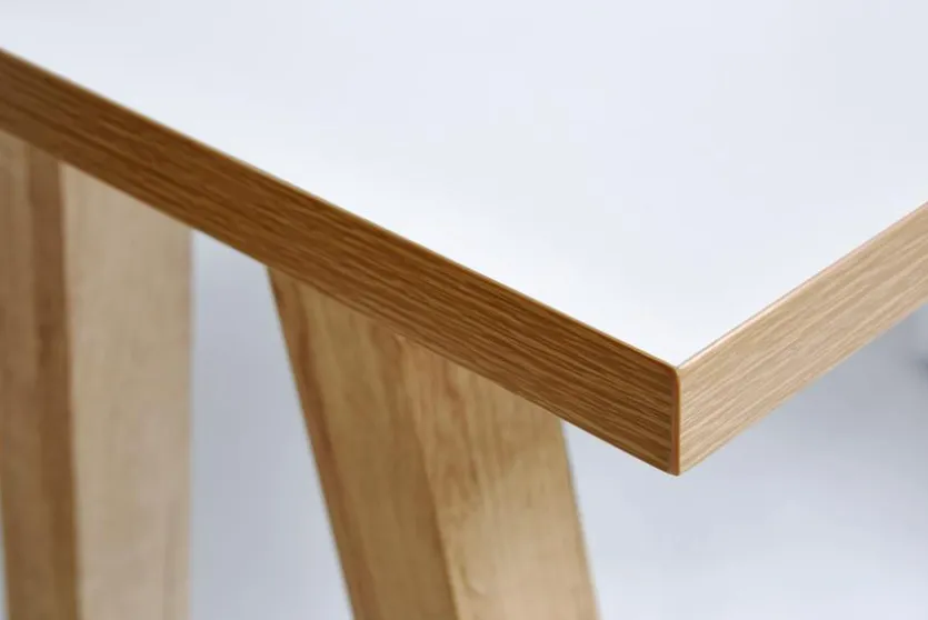 - Aus Spanplatte mit kratzfester Melaminharzfolie in weiß, Gestell und Absetzungen in Kerneiche Nachbildung