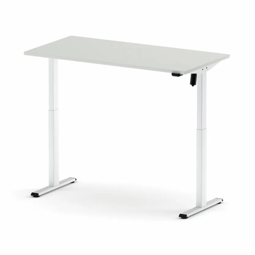 - Metall T-Fußgestell mit einmotorigem Antrieb in RAL 9010 Pure White