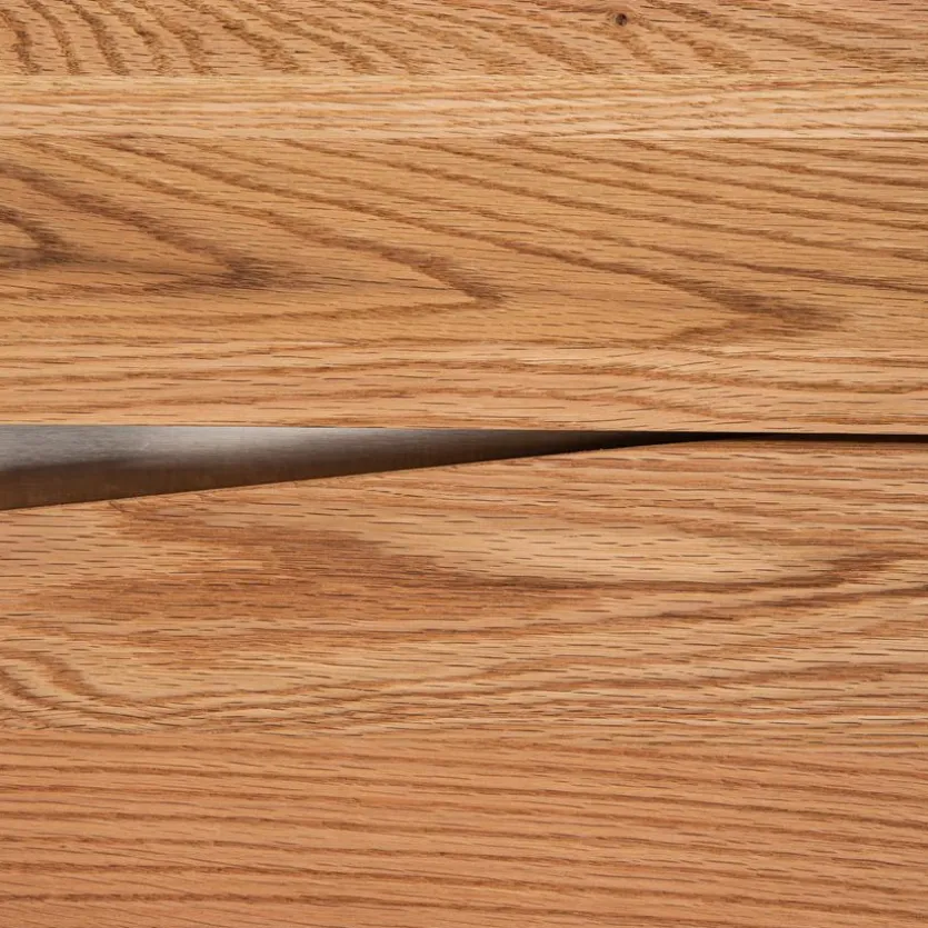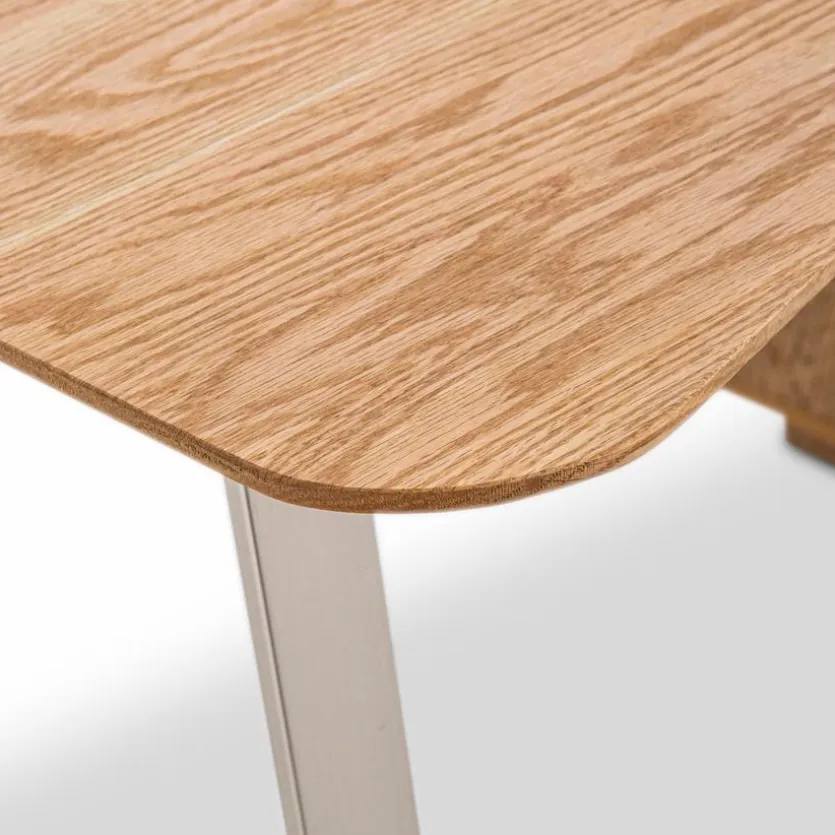 - Schreibtischplatte und Front des Containers aus massiver und geölter Asteiche, Containerkorpus aus Holzwerkstoff (MDF) mit hochwertiger Dekorfolie in Asteiche Nachbildung geölt, Gestell aus Metall in Edelstahloptik gebürstet