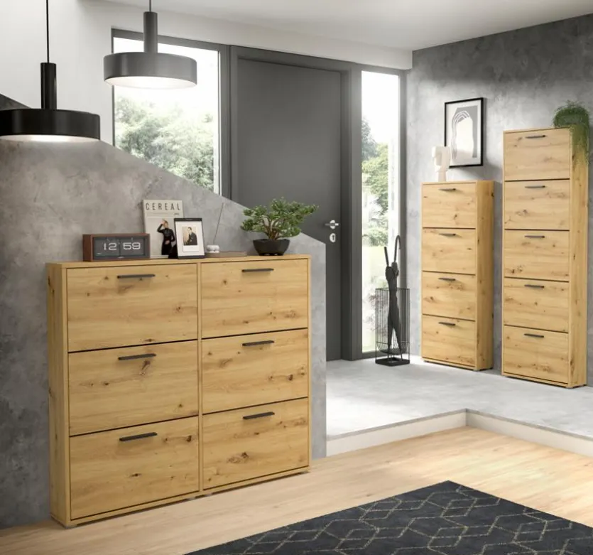 Der Schuhkipper Sam präsentiert sich stets als charmanter Blickfang und sorgt für ein elegantes Ambiente in den Räumlichkeiten. Mit seinem schicken Look passt er hervorragend zu vielen Wohnstilen und Deko-Ideen. So nutzt man den attraktiven Schuhkipper Sam gerne als eine praktische Aufbewahrungsmöglichkeit.