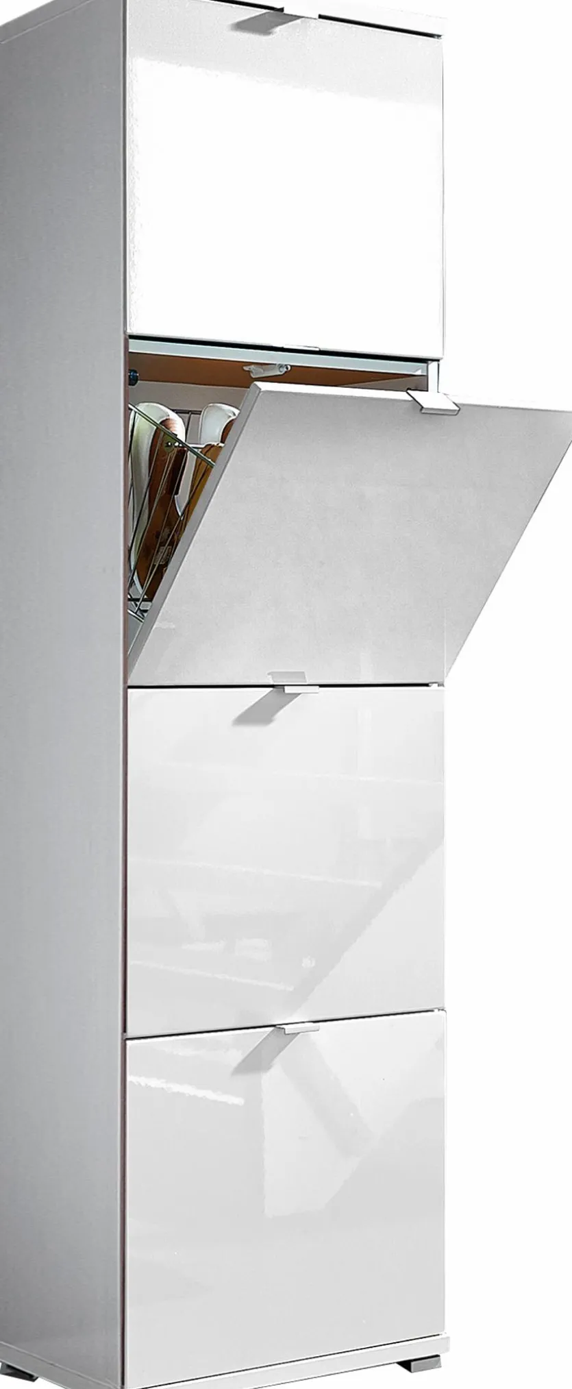 Mit dem Schuhschrank Colorado der Marke Germania holen Sie sich ein äußerst praktisches Möbelstück in Hochglanz-Optik nach Hause. Zudem bietet der Schrank mit seinen vier Klappen genügend Platz zum Verstauen. Aufgrund der schmalen Bauweise ist der Schuhschrank Colorado von Germania besonders gut für kleine Räume geeignet.