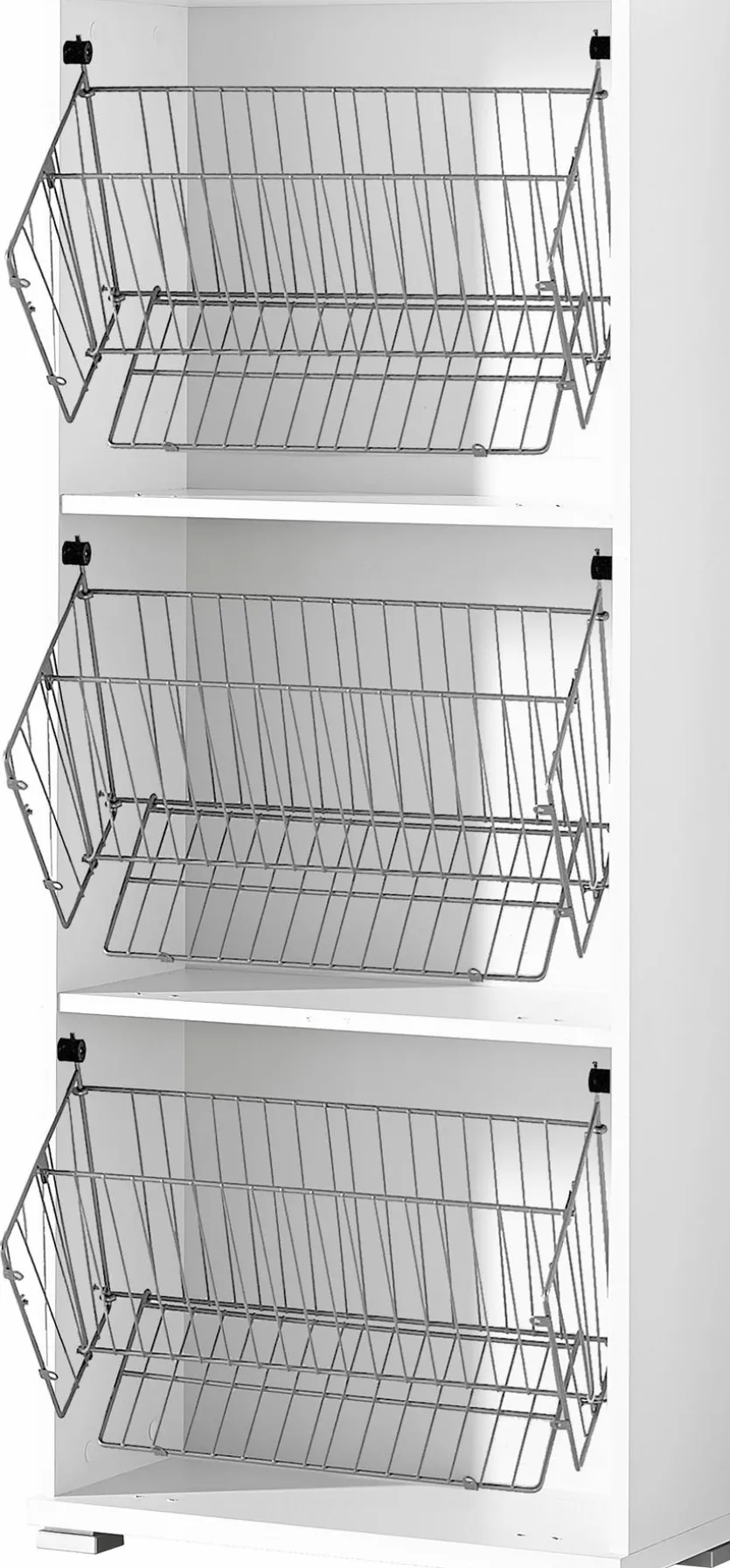 Der Schuhschrankkorpus Colorado des Herstellers Germania kann vielseitig mit den verschiedenen Ausprägungen der Schuhschrankklappen aus der gleichnamigen Serie ergänzt werden. Der Korpus ist in weiß matt gehalten und verfügt mit seinen drei Fächern inklusive drei Metallschubkörben über einen Stauraum für ca. 12 Paar Schuhe. Mit dem Schuhschrankkorpus Colorado der Marke Germania erhalten Sie ein modern designtes Möbelstück.