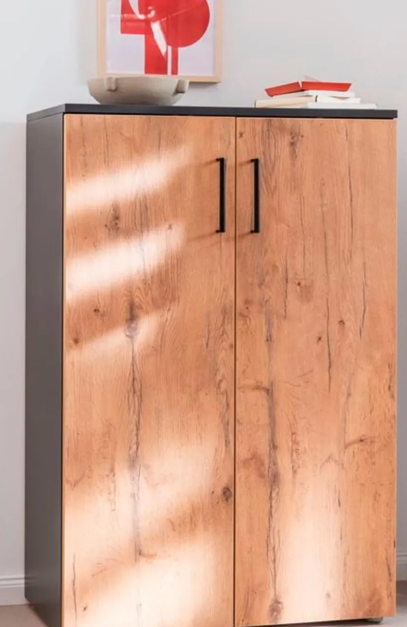Der Schuhschrank Shoes von Wittenbreder vereint minimalistisches Design mit funktionalem Stauraum. Hinter zwei Türen bietet er Platz für mehrere Paar Schuhe und passt dank seiner kompakten Form auch in kleine Flure. Die gemaserte Front mit den beiden Griffen sorgt für einen modernen Look. Darüber hinaus harmoniert der Schuhschrank Shoes mit vielen Einrichtungsstilen.