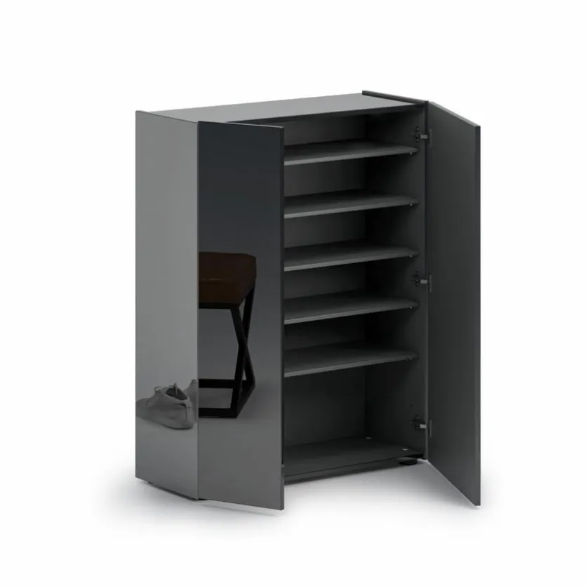 Dank seines großzügigen Innenraums bietet Ihnen der schicke Schuhschrank Tanko viel Platz für Sneakers, Boots, Pumps & Co. Auch optisch weiß das moderne Möbelstück, welches vor allem durch seine noblen Hochglanzfronten ins Auge fällt, vorbehaltlos zu überzeugen. Kombinieren Sie Ihren Schuhschrank Tanko stilsicher mit modernem Interieur.