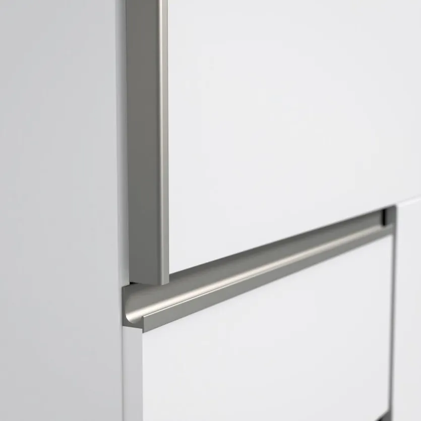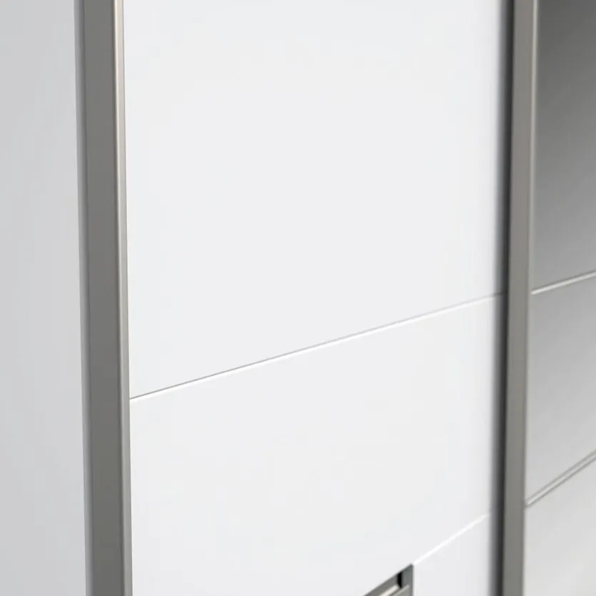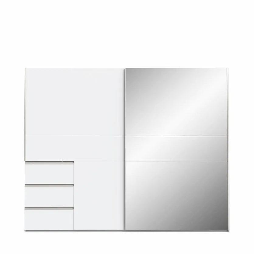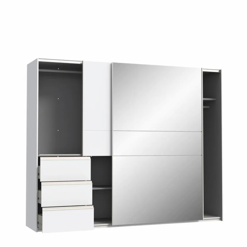 - Inkl. 3 Außenschubkästen, 1 Einlegeboden, 2 Kleiderstangen und Griffe aus Metall in Aluminium