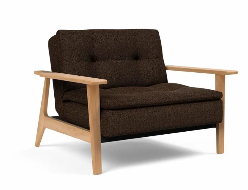 - Bezug aus Stoff (taura) in chocco (358), Füße und Armlehnen aus massivem Eichenholz lackiert