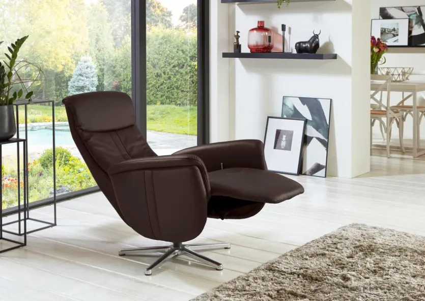 - Bezug aus Leder (Torro) in schoko; Sternfuß alu chromfarbig (V1)