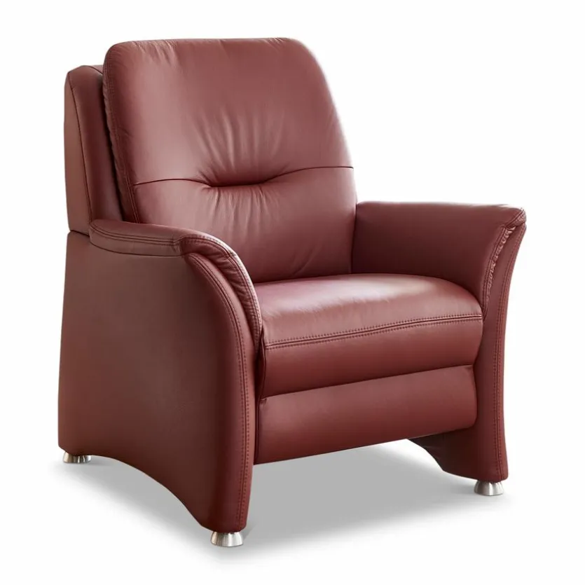 - Bezug aus Leder (Torro) in brombeer, Füße Metall alufarbig