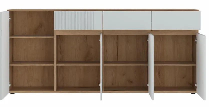 - Mit 4 Türen, 5 Einlegeböden und 3 Schubkästen
