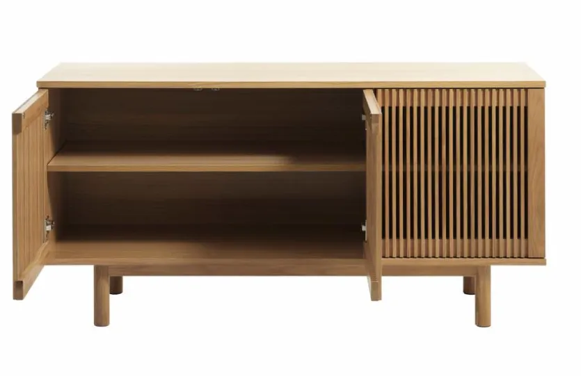 - Mit 3 Lamellentüren und 2 dahinterliegenden Einlegeböden