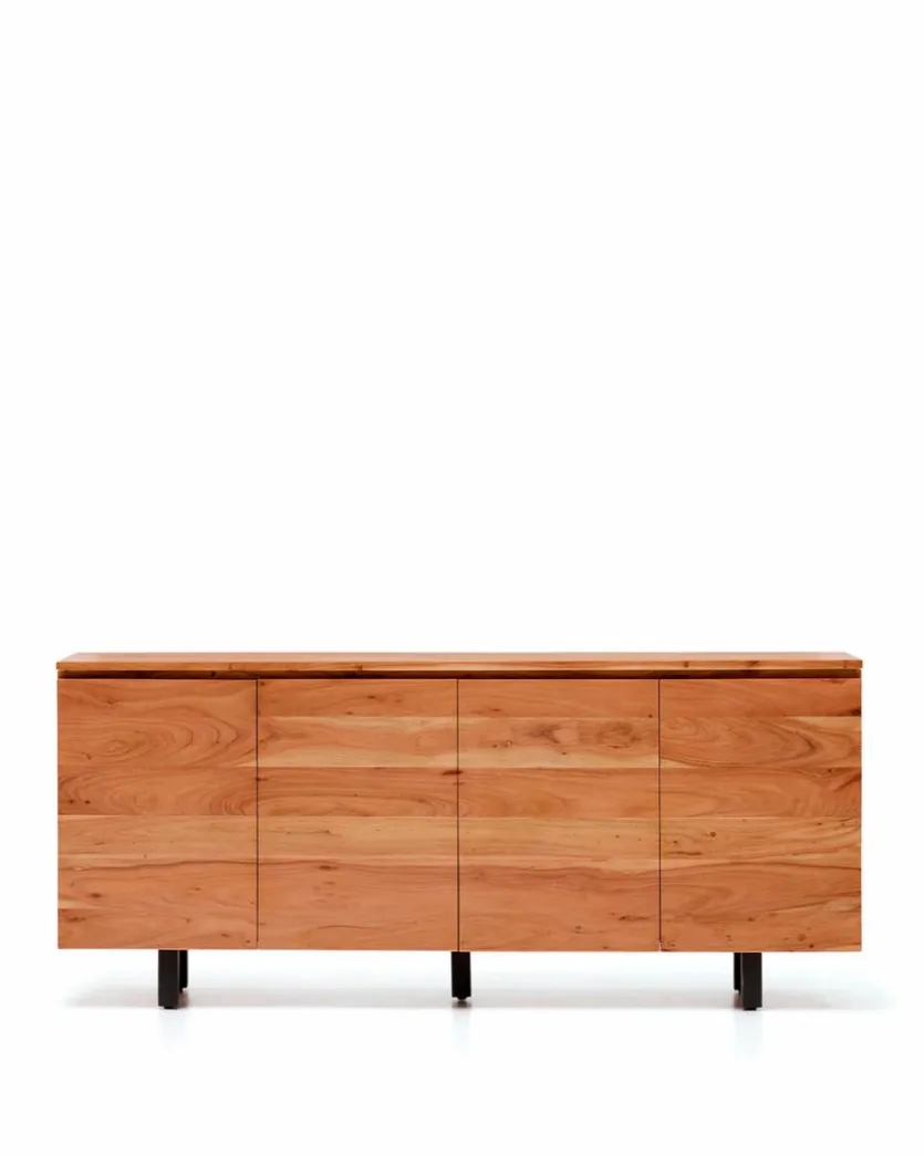 Das Sideboard Uxue der Marke Kave Home überzeugt mit seiner Kombination aus rustikalem Holz und lackiertem Metall, wodurch es genau den Nerv der Zeit trifft. Hinter vier Türen bietet Ihnen die Kommode jede Menge Stauraum für Nützliches und Liebgewonnenes, sodass hier alles seinen festen Platz findet. Besonders gut passt das Sideboard Uxue zu modernen, stilbewussten Einrichtungskonzepten.