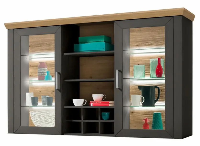 Farbe: Graphit / EicheMaterial: DekorGröße: Breite: 184,00 cm, Höhe: 126,00 cm, Tiefe: 44,00 cm