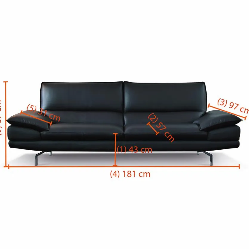 Farbe: NeroMaterial: LederGröße: Breite: 181,00 cm, Höhe: 87,00 cm, Tiefe: 97,00 cm