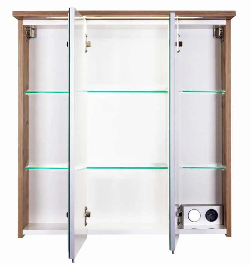 Verwandeln Sie Ihr Badezimmer mit dem dreitürigen Spiegelschrank Isola von Schildmeyer in eine stilvolle Oase. Aufgrund des integrierten Beleuchtungspanels sorgen Sie für eine angenehme Atmosphäre und perfekte Lichtverhältnisse. Bewahren Sie Ihre Pflegeprodukte und Accessoires im geräumigen Spiegelschrank Isola auf und genießen Sie Ordnung und Stil in Ihrem Bad.