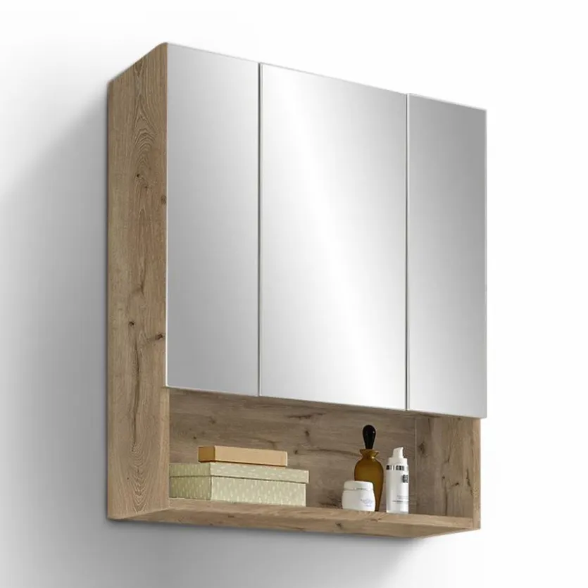 Dank der naturbelassen wirkenden Holzelemente bringt der symmetrisch designte Spiegelschrank Kreta einen ganz besonderen Charme mit. Sie können den klassischen Badschrank sowohl mit rustikalen Holzmöbeln als auch mit glatten Fronten kombinieren. Der Spiegelschrank Kreta bietet Ihnen viel Platz für Kosmetik, Medikamente sowie Beauty- und Wellness-Produkte.