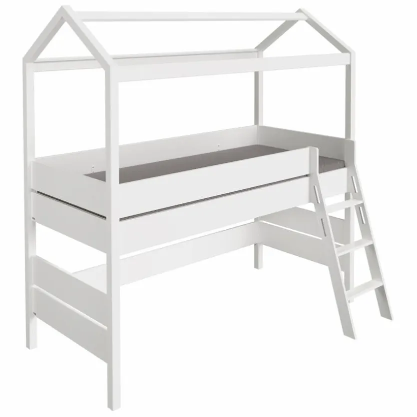 - Aus Holzwerkstoff (Spanplatte) mit kratzfester Melaminharzfolie in kreideweiß, Pfosten und Leiter aus massiver und kreideweiß lackierter Buche