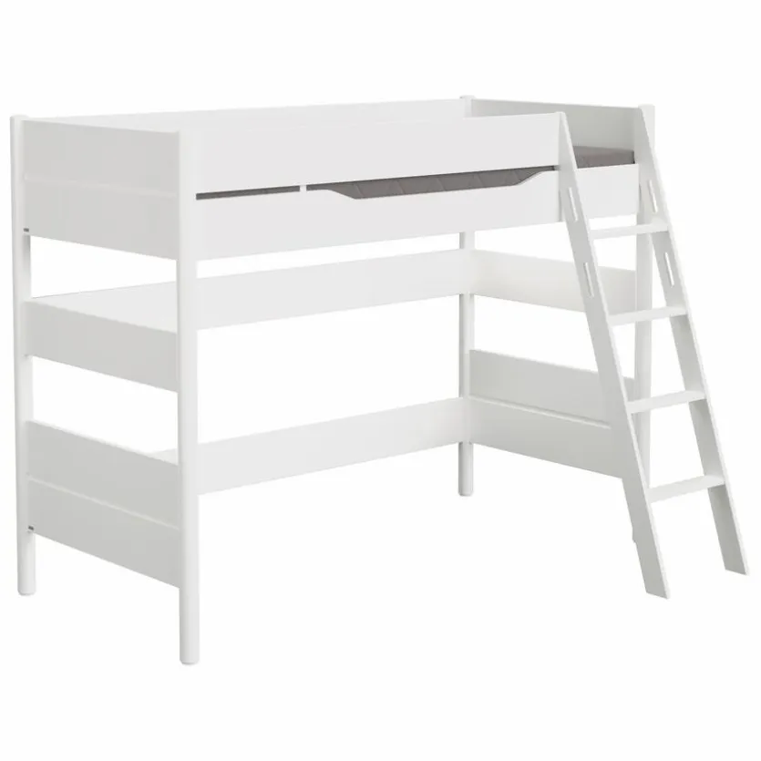 - Aus Holzwerkstoff (Spanplatte) mit kratzfester Melaminharzfolie in Kreideweiß, Pfosten aus massiver Birke in weiß lackiert