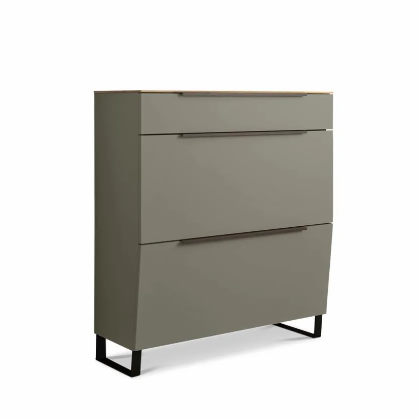 Mit dem Standschuhschrank Milana von Arredokit sorgen Sie dafür, dass Ihre Diele stets aufgeräumt ist. Der elegante Schrank bietet ausreichend Platz für die Alltagsschuhe Ihrer Familie. Schlüssel, Geldbörsen und andere Habseligkeiten, die Sie regelmäßig mit sich führen, finden z. B. über Nacht ein Plätzchen in der Schublade. Selbst wenn Sie Besuch erhalten, nimmt der Standschuhschrank Milana der Marke Arredokit die zusätzlichen Schuhe gerne auf.