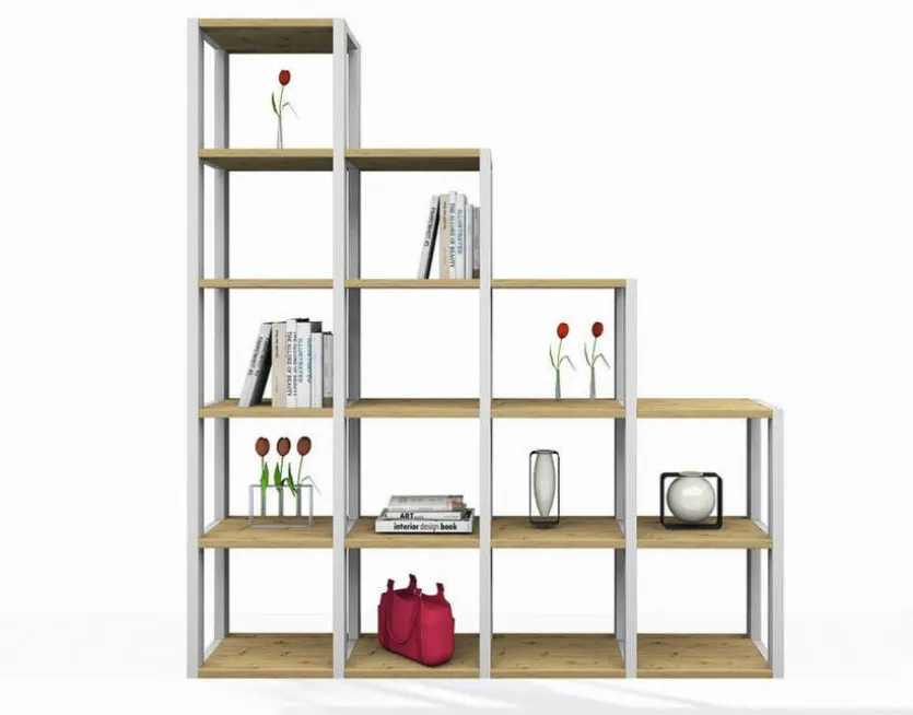 Mit der modernen Stufenregalkombi Padua realisieren Sie im Handumdrehen individuelle Wohnkonzepte. Nicht nur, dass das Treppenregal aufgrund seiner Stufen einen tollen Blickfang darstellt, es lässt sich auch perfekt unter der Dachschräge einer kleineren Wohnung unterbringen. So sorgt die vielseitige Stufenregalkombi Padua auf stylische Art für Ordnung, indem es viel Platz für Bücher, Dekorationen und Alltagsgegenstände bietet.