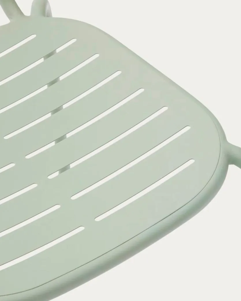 Gestalten Sie mit dem Stuhl Brai von Kave Home Ihre Terrasse oder Ihren Balkon noch schöner! Eine fließende Formensprache, die wunderbar weich und harmonisch wirkt, bestimmt die Ästhetik dieses modernen Sitzmöbels mit Rückenlehne. Ausgesprochen praktisch ist, dass sich der strapazierfähige Stuhl Brai nach Gebrauch platzsparend stapeln lässt.