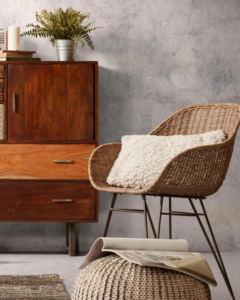 Rattan ist ein Naturprodukt und wird aus den Lianen der ostasiatischen Rotangpalme gefertigt. Es wird als natürliches Flechtmaterial für Möbel oder Wohnaccessoires verwendet. Es ist sehr leicht, besonders strapazierfähig, langlebig und elastisch.