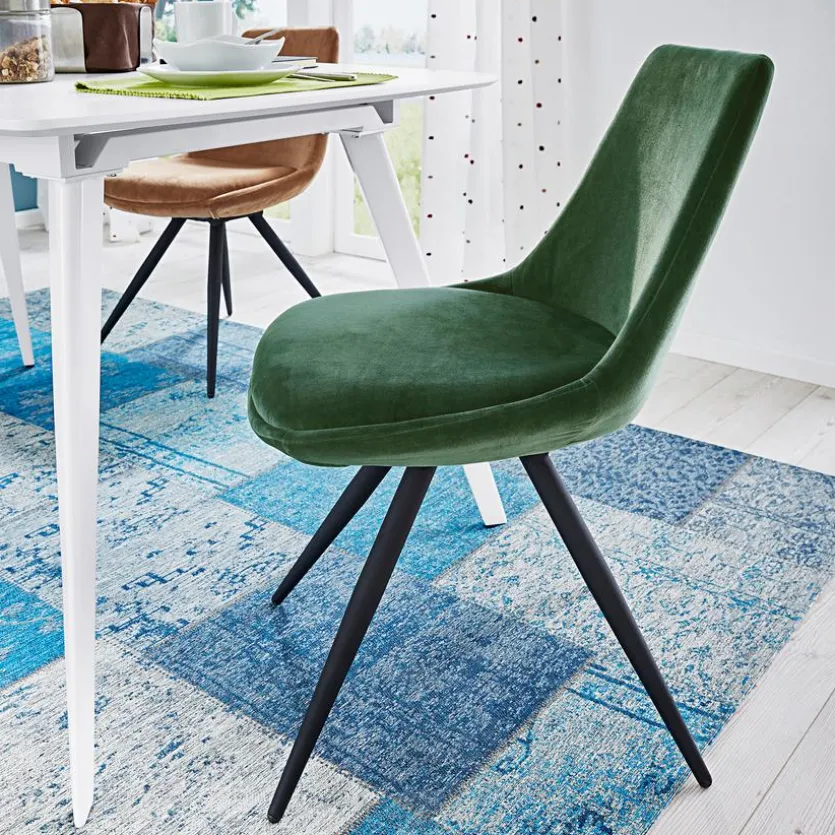 Durch sein edles Design lässt sich der Stuhl Girona mit fast jedem Einrichtungsstil kombinieren. Außerdem sorgt der Stuhl Girona für einen angenehmen Sitzkomfort. Verantwortlich hierfür ist die gepolsterte Sitzschale aus Velours, die sich gleichermaßen samtig und flauschig anfühlt. Zudem garantiert das Metallgestell aus Rundrohr eine hohe Standfestigkeit.