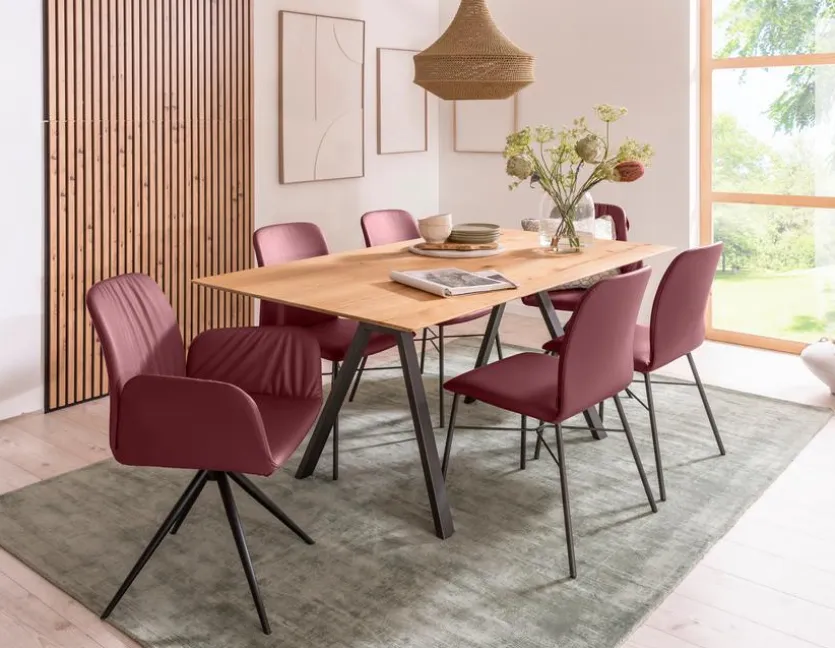 Das Label Musterring präsentiert Ihnen mit dem Stuhl Nando ein ausgesprochen elegantes Sitzmöbel. Vor allem die leicht geschwungene Lehne und der Bezug aus Echtleder kreieren einen geschmackvollen Look. Auch das eher filigran wirkende Gestell aus Metall verleiht dem Stuhl Nando eine überaus attraktive optische Note.