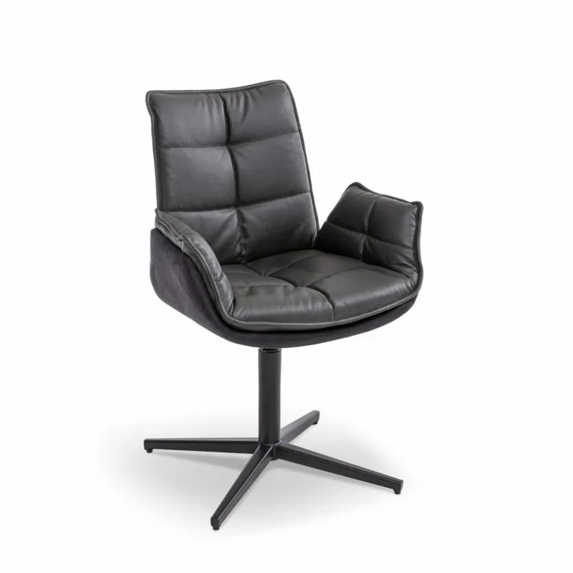 - Bezug Rücken aus Stoff in schwarz, Bezug Sitz aus Echtleder in schwarz