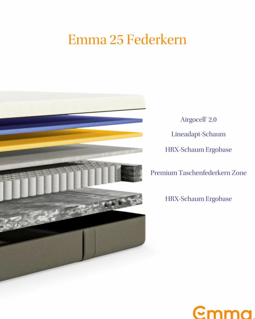 - Durch ihren Aufbau passen die Emma-Matratzen zu jedem, auch ohne komplizierte Matratzen-Härtegrad Formulierungen.