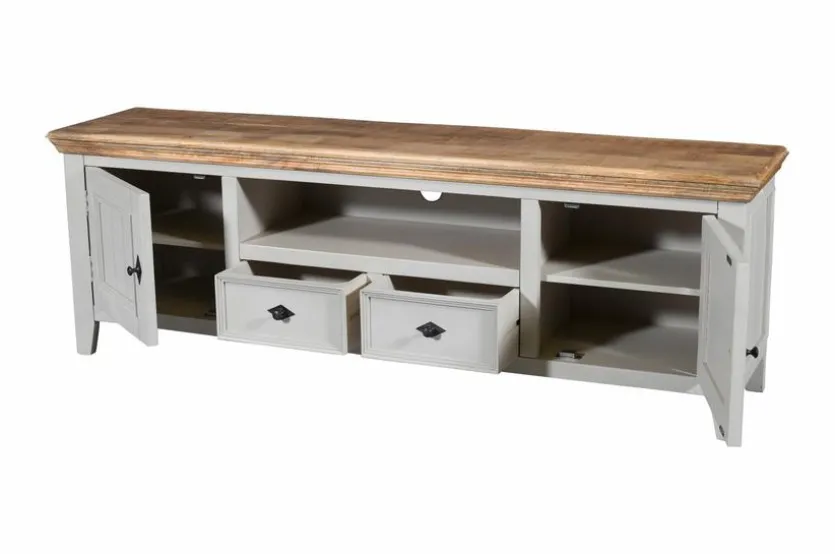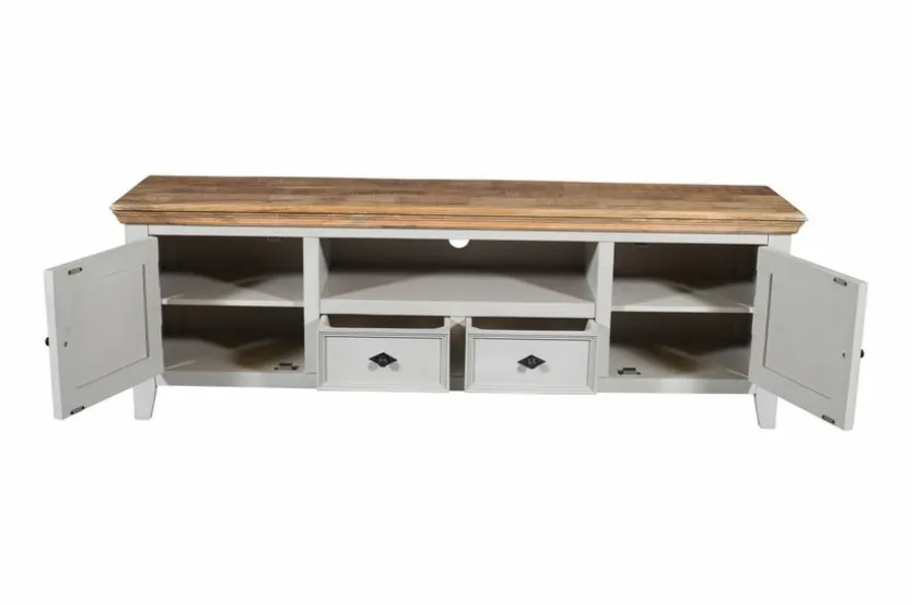 Mit dem TV-Lowboard Country stellt WOLFMÖBEL ein innovatives Interieur vor, das mit zwei Holztüren, zwei Schubkästen und zwei Fachböden sowie einer Ablage versehen ist. Die frische und klare Optik passt optimal zum angesagten Massivholztrend und damit zu vielen modernen Ambienten. Der TV-Lowboard Country ist ein echtes Naturprodukt und hält jede Menge Stauraum für Sie bereit.