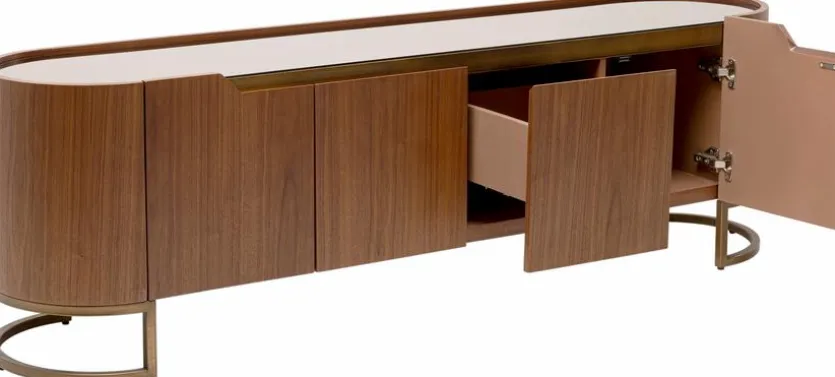 Das TV-Lowboard Giorgio 70185 von KARE DESIGN bietet praktischen Platz für Ihr Fernsehgerät, ohne sich dabei in den Vordergrund zu drängen. Dabei sorgt die wunderbar klare Formensprache dafür, dass sich der TV-Unterschrank mühelos in Ihre zeitgemäße Einrichtung einfügt. Überzeugen kann das TV-Lowboard Giorgio 70185 aber auch mit seinen inneren Qualitäten, denn es bietet jede Menge Stauraum für Fernbedienung oder Ihre Filmsammlung.