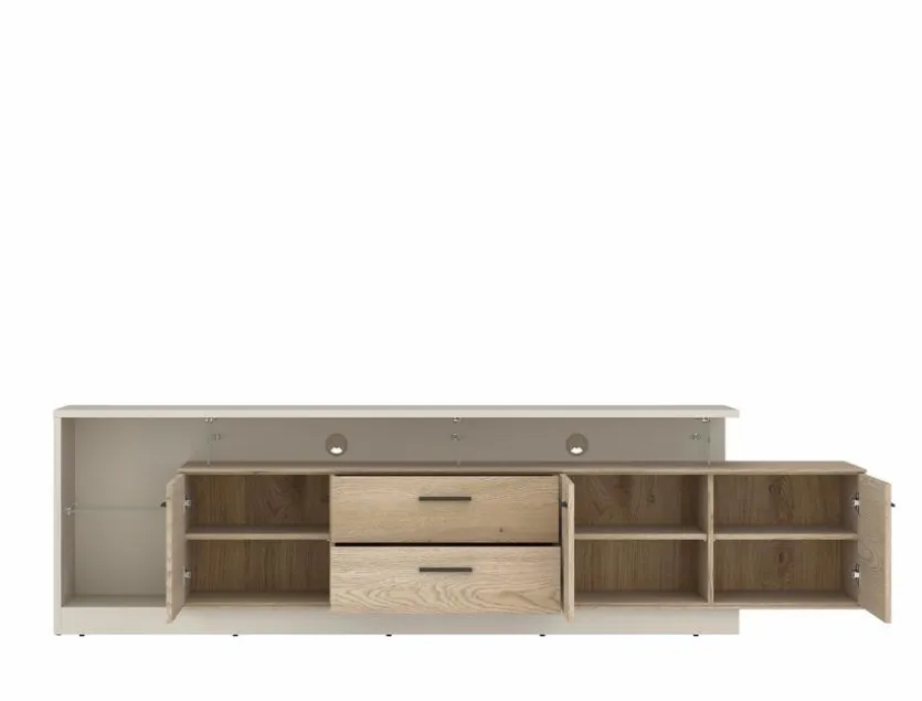 Ein Schmuckstück und echter Hingucker für jedes Wohnzimmer oder jede Lounge ist das TV-Lowboard Lagoon des Herstellers Wójcik im modernen Echtholz-Look. Dieser TV-Unterschrank sieht nicht nur einfach klasse aus, sondern ist zudem auch noch superpraktisch. Das TV-Lowboard Lagoon bietet eine großzügige Stellfläche für Ihren Fernseher und außerdem jede Menge Platz für andere Geräte sowie Stauraum für Zubehör.
