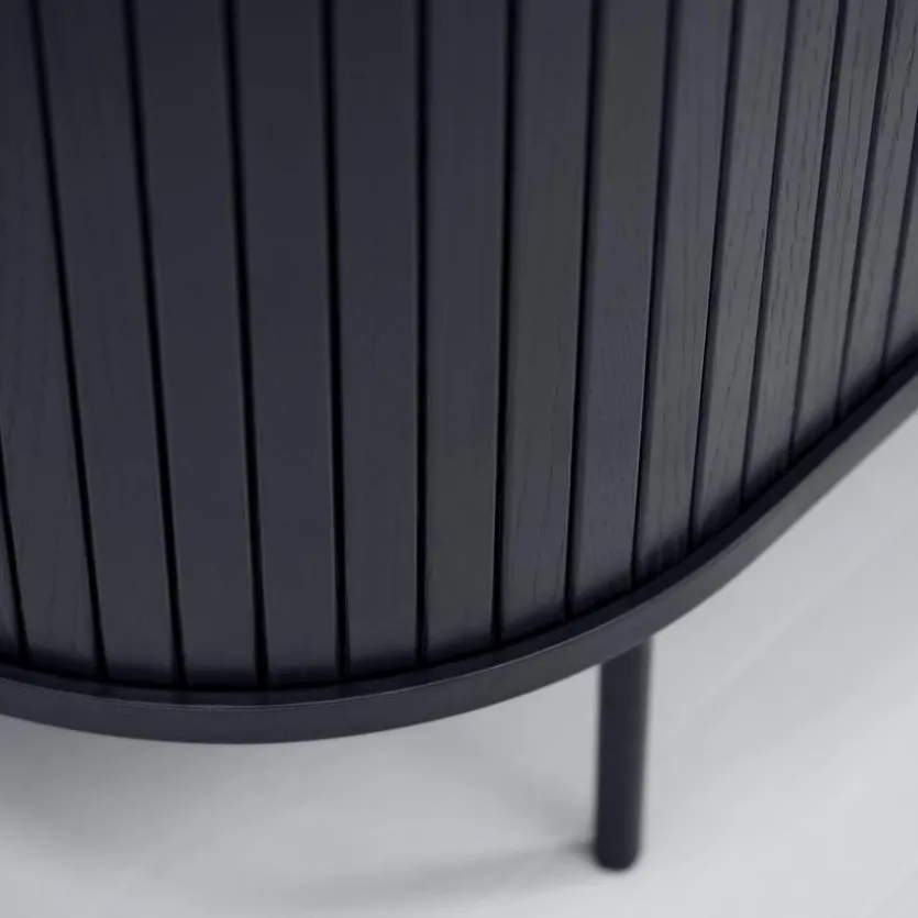 Mit dem TV-Lowboard Nola verleihen Sie Ihrem Wohnzimmer eine ganz besondere Note, denn das einzigartige Design aus einzelnen Holzstreben weiß garantiert zu beeindrucken. Dank der großzügigen Ablagefläche finden Heimkino-Installationen problemlos auf dem TV-Unterschrank Platz, während er hinter zwei Türen ausreichend Stauraum für Zubehör bereit hält. Kombinieren Sie das TV-Lowboard Nola am besten zu ausgefallenen und modischen Einrichtungskonzepten.