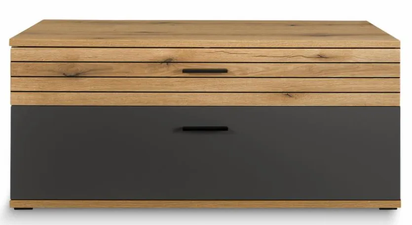 - Korpus aus Holzwerkstoff (Spanplatte) mit kratzfester Melaminharzfolie in Anthrazit, Deckplatte aus Holzwerkstoff (Spanplatte) mit kratzfester Melaminharzfolie in Coast Evoke Eiche