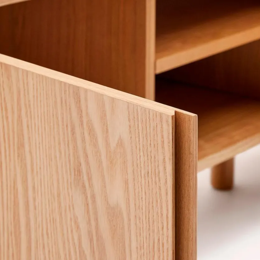 Das TV-Lowboard Salaya von Kave Home vereint die Schönheit gerader Linien mit der Dynamik seiner geschwungenen Seitenpaneele. Die charakteristischen Details des Holzes kommen bei diesem TV-Unterschrank toll zur Geltung. Dieses TV-Lowboard Salaya kreiert mit seinem vielseitigen Design eine inspirierende Umgebung, die die Essenz der Natur einfängt.