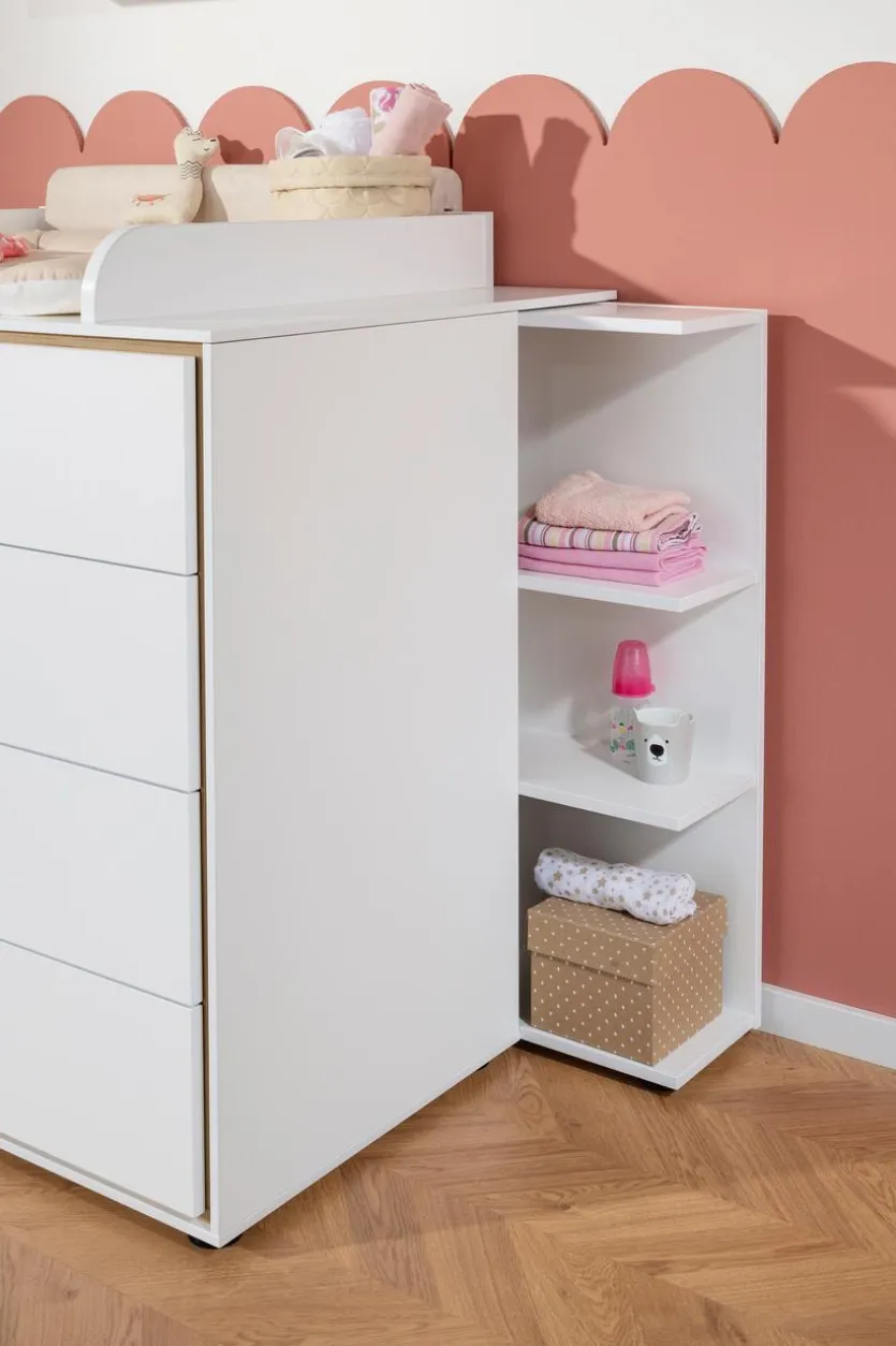 Das Unterstellregal Lieven von paidi erweitert Ihre Wickelkommode in hervorragender Weise. Sie können das Unterregal mühelos links oder rechts unterstellen. Sofort profitieren Sie mit dem Unterstellregal Lieven aus dem Hause paidi von mehr Stauraum für allerlei Utensilien, die für das Wechseln der Windeln notwendig sind.