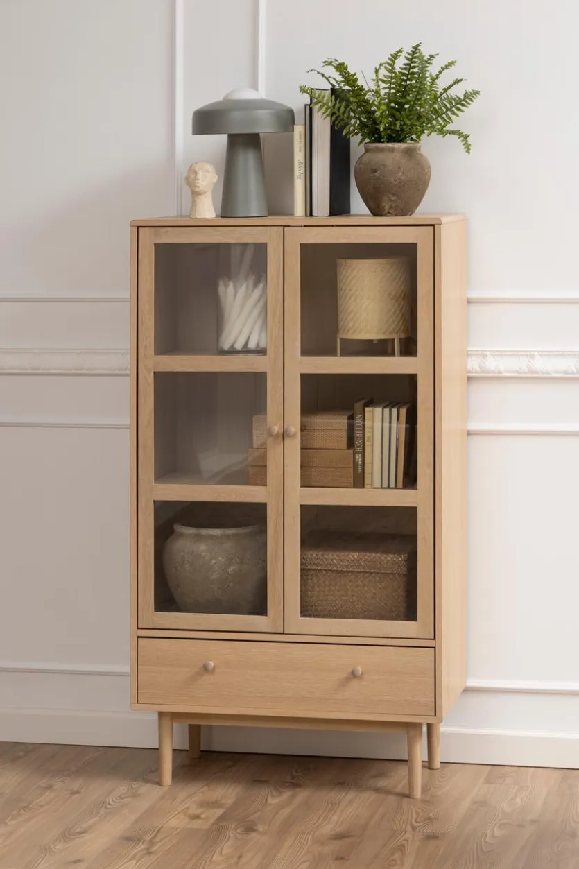 Wenn Sie beispielsweise hübsches Teegeschirr besitzen, das Sie in Ihrem Wohnzimmer ausstellen möchten, dann eignet sich dafür die stilvolle Vitrine Aston. Ihre Türen mit Glaseinsätzen ermöglichen, dass die Tassen und Unterteller perfekt zu sehen sind. Zudem erlauben die beiden Einlegeböden der wunderschönen Glasvitrine, dass Sie ausreichend Platz für das Geschirr haben. In der darunterliegenden Schublade der Vitrine Aston können Sie Tischwäsche verstauen.