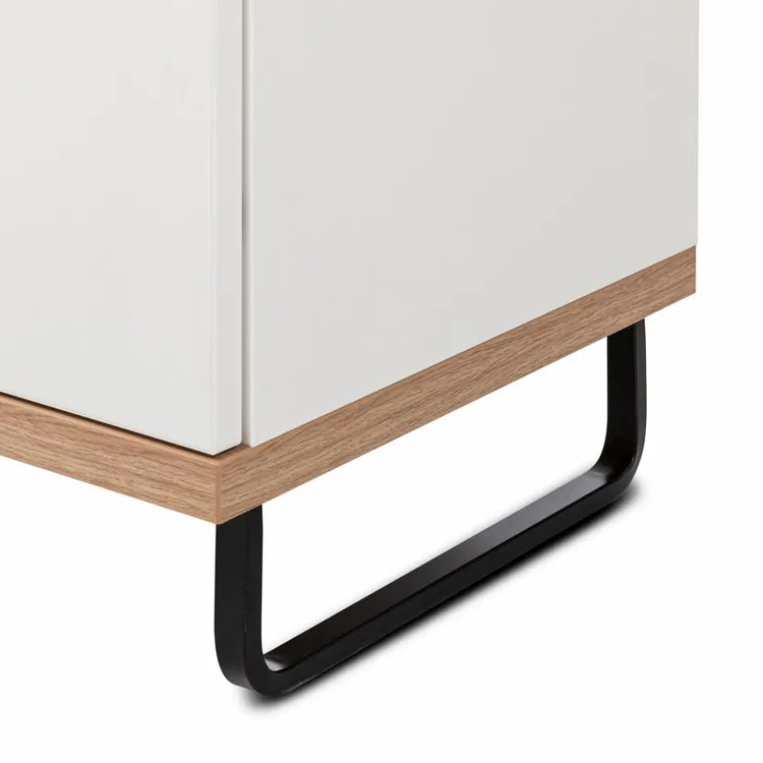 - Korpus und Front aus Holzwerkstoff (Spanplatte) mit kratzfester Melaminharzfolie in Polarweiß, Absetzung aus Holzwerkstoff (Spanplatte) mit kratzfester Melaminharzfolie in Artisan Eiche